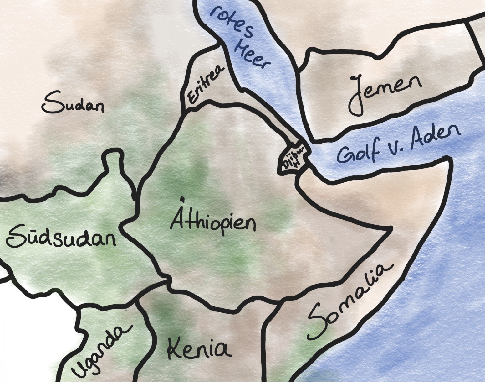 Meine Freunde und Bekannte fanden unser Ziel toll, aber viele wussten nicht wo genau Äthiopien liegt. In Afrika war klar, aber wo genau da? Und falls ihr euch das auch gefragt habt, habe ich hier eine Karte, die das erklärt. Das Land ist oberhalb von Kenia und Somalia. Unterhalb von Eritrea und Sudan, wobei der Sudan sich auch rüber in den Westen streckt. Weiter südwestlich ist der Südsudan zu finden und im Osten grenzt Äthiopien an Dschibuti. Das Land hat kein Meer, das war dann meist die 2. Frage oder aber ob da nicht eine schreckliche Armut herrsche.
