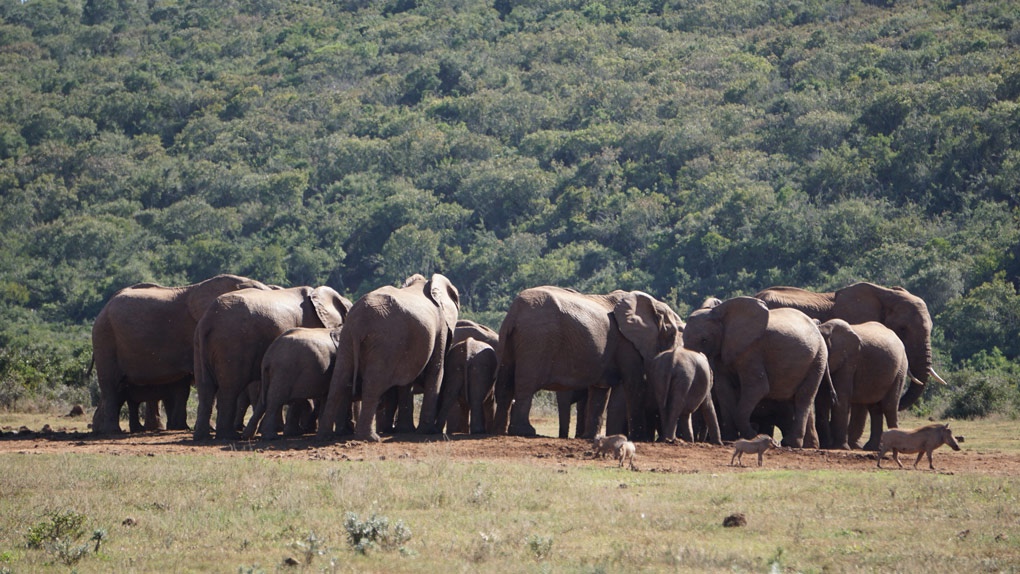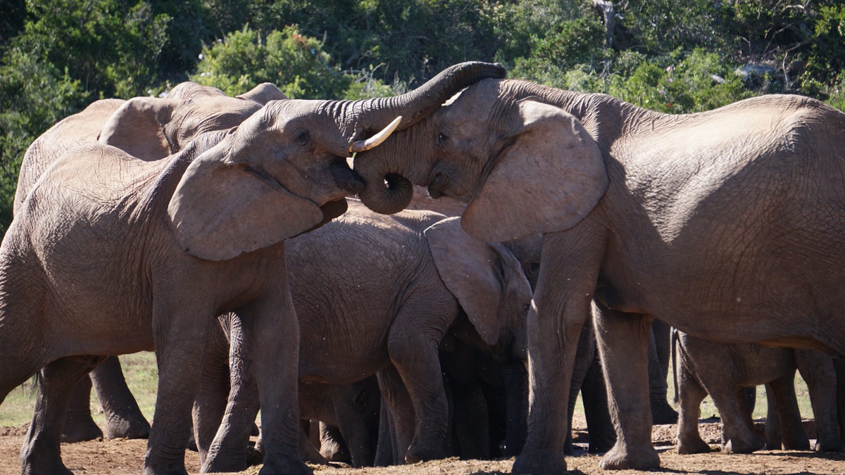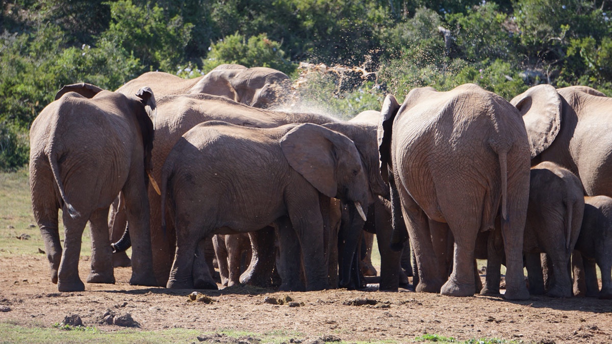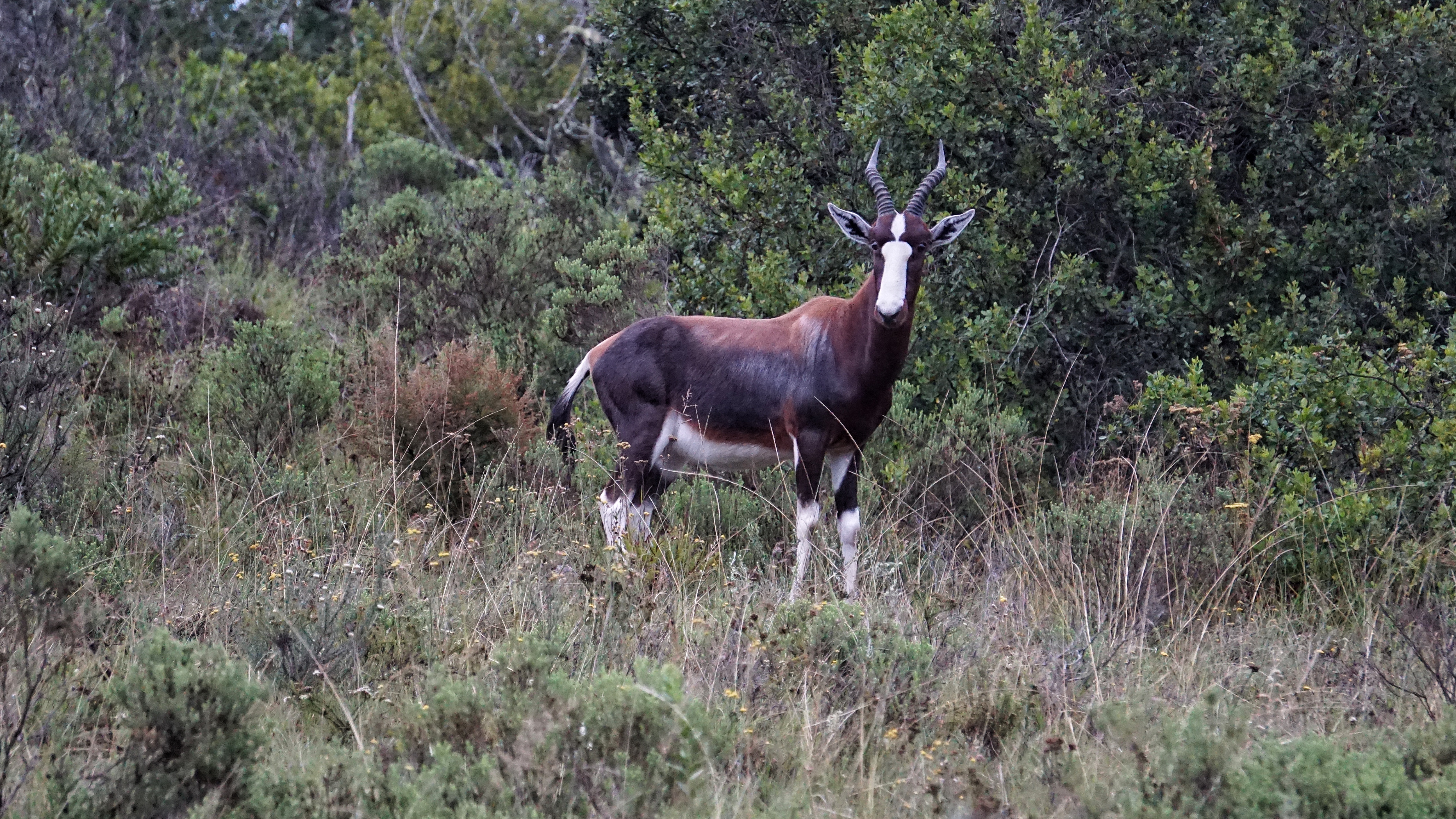 Der Park ist voll mit Gnus, die übrigens auch Wildebeest heißen und zur Gattung der Antilopen gehören, wenn auch nicht wirklich sichtbar. Gnu nennt man sie, weil sie sich eigentlich selbst diesen Namen gegeben haben, sie rufen nämlich Gnuuuu. Natürlich haben wir auch Elefanten gesehen und Sam kennengelernt. Er sollte getötet werden, aber Botlierskop hat sich seiner angenommen und so darf er nun in dem Reserve in Ruhe weiterleben. Uff, happy to hear!