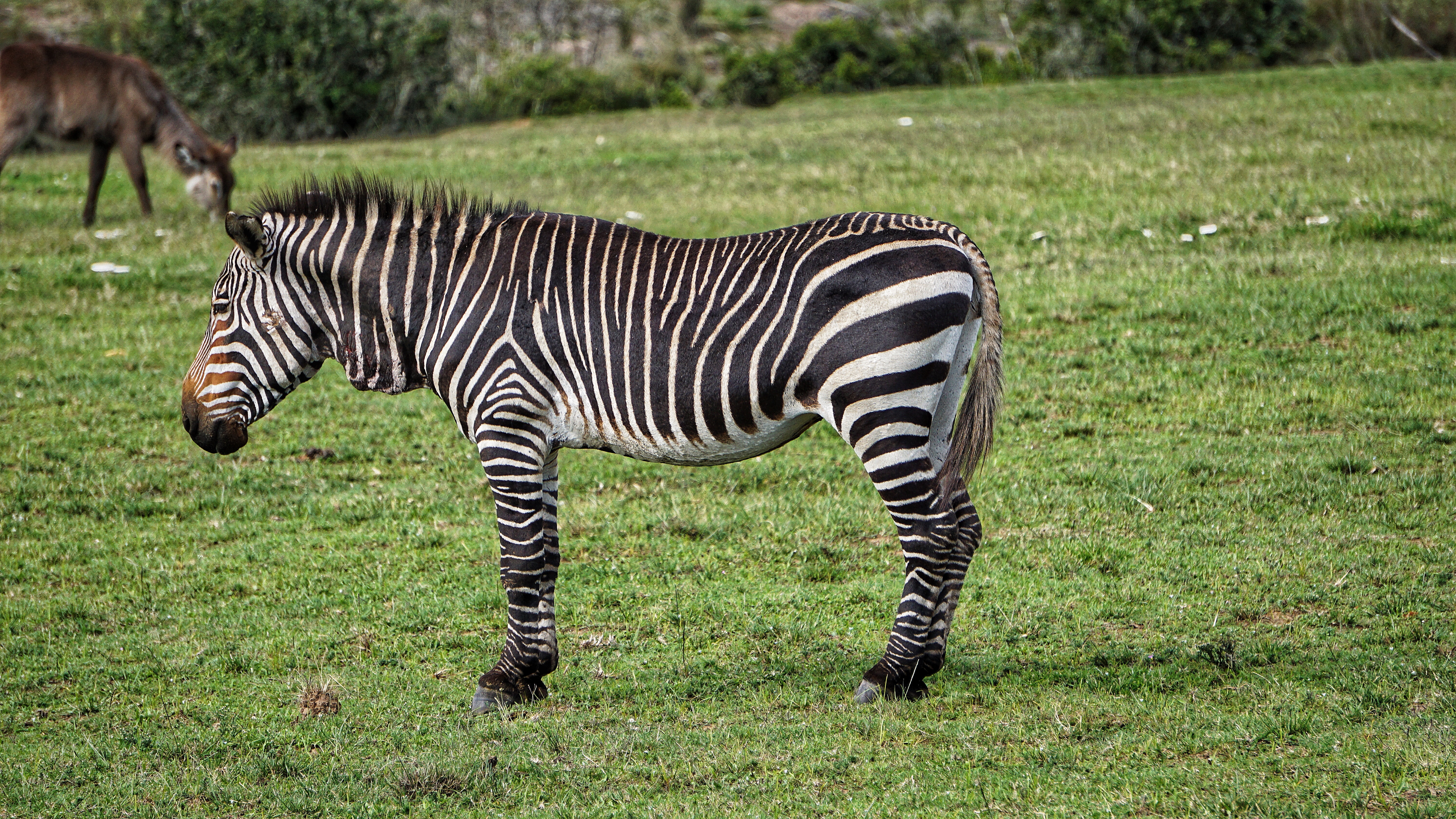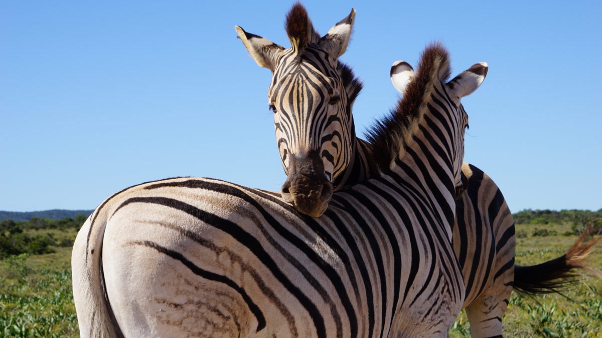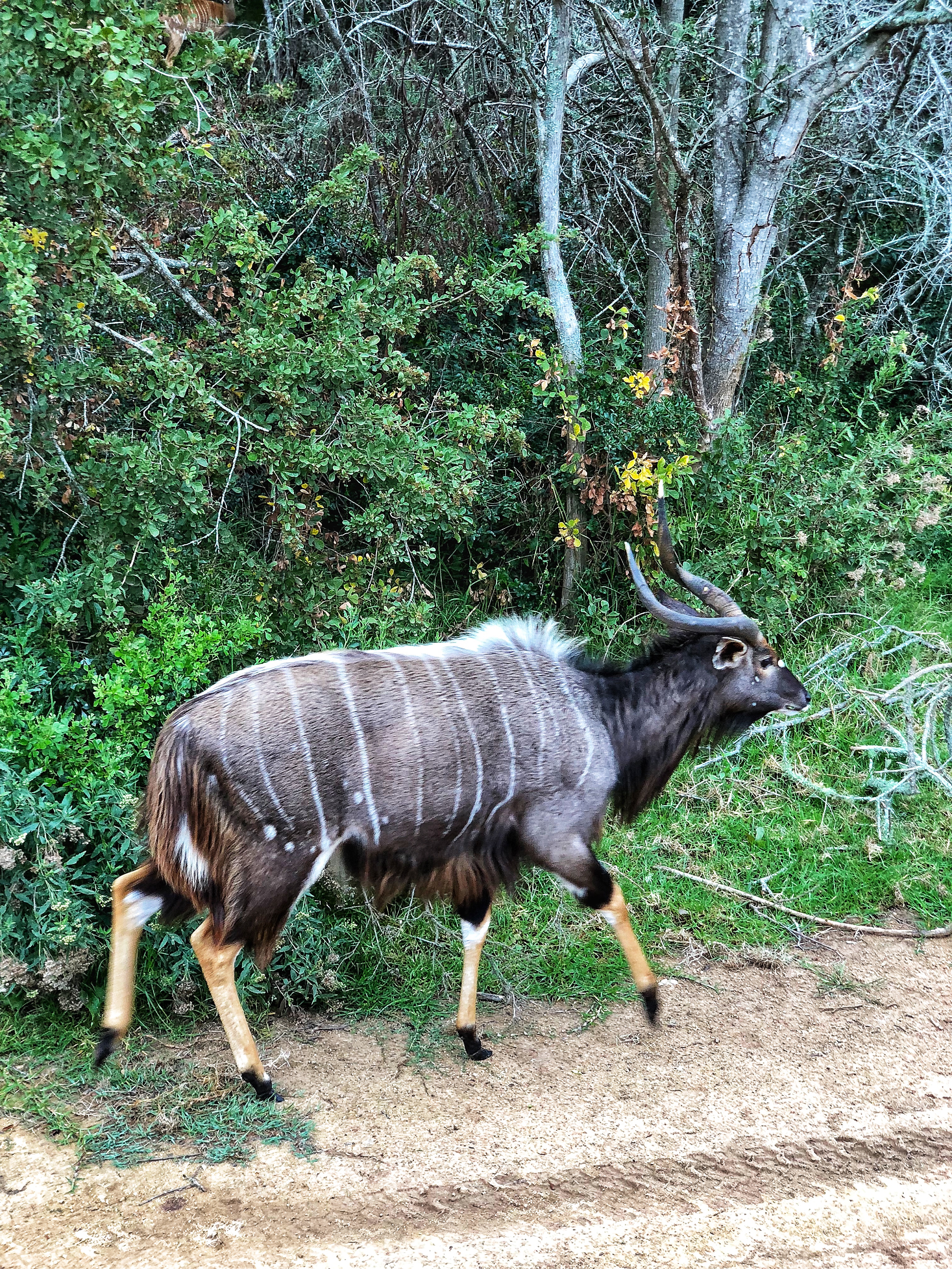 Am nächsten Morgen machten wir eine guided Safari, die sehr aufschlussreich war. Zum Beispiel erfuhren wir, dass die Nashörner mit den Zebras und den mit Pferden verwandt sind. Zebras werden da unten in Südafrika donkey’s in pajamas genannt, weil sie ausehen wie Esel. Das wiederum ist auch nicht weit hergeholt, da sie in der Tat mit ihnen verwandt sind 🙂 Bei den Gnus, die ich sehr mochte, sagte der Guide „A face only a mother can love!“ Sie werden als extrem hässlich beschrieben. Ich kann dem nicht beipflichten, aber der Satz hat mich dann doch zum Lachen gebracht. Außerdem haben wir erfahren, dass die Streifen der Zebras im Süden dunkler sind und bis ganz runter an die Hufe gehen, weil es kalt wird und das Schwarz die Wärme speichert. Gelesen habe ich, dass in einer Wärmebildkamera die schwarzen Streifen tags warm waren und nachts aber nicht. 🤔 Fakt ist, dass Zebras sehr niedlich aussehen.