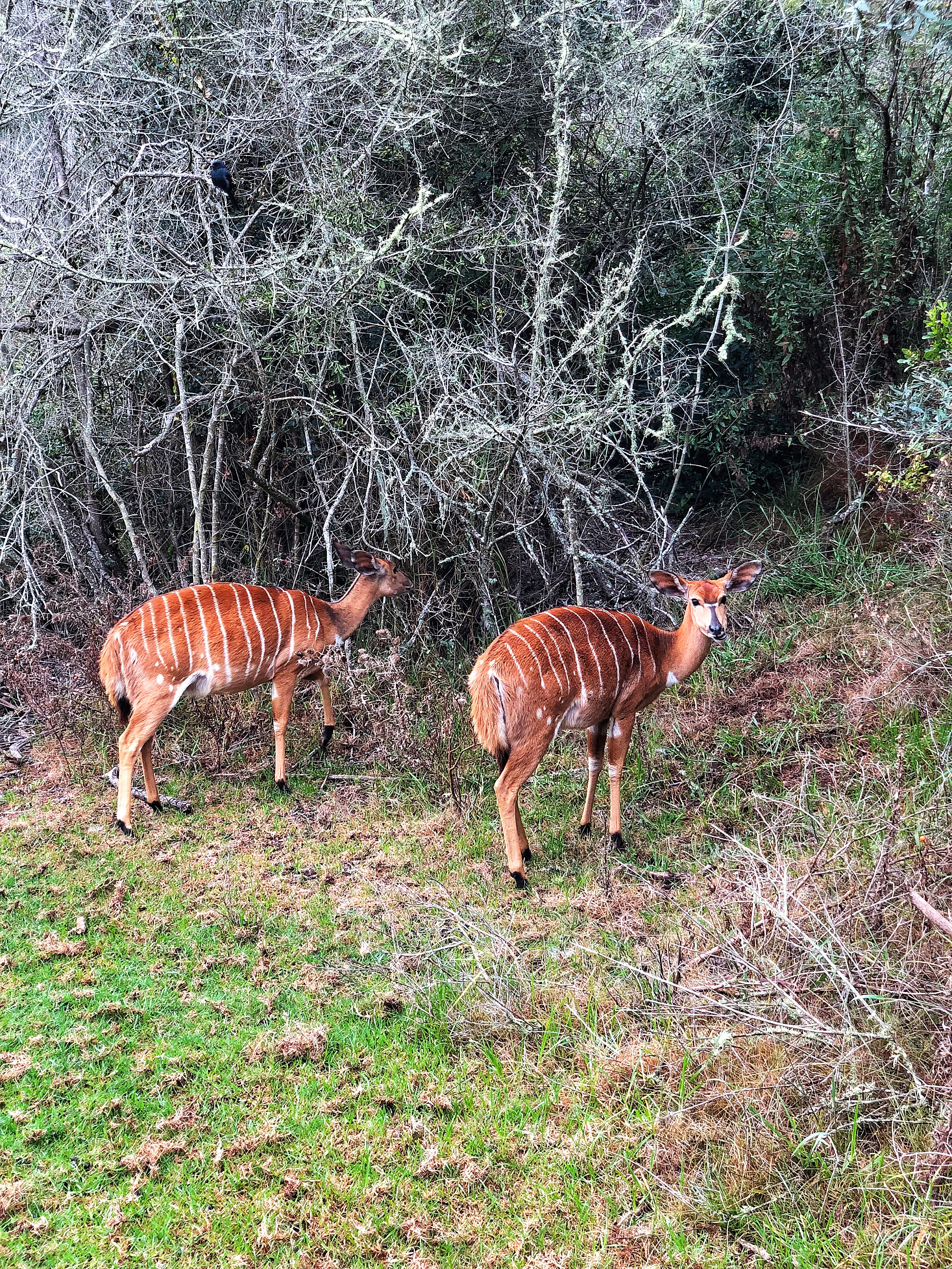 Weil es grade zu dämmern anfing, verschönerte sich die Landschaft auch nochmal ganz schön. Ich bin ja so ein Fan dieses Lichts bei Dämmerung, das wirkt immer so magisch. Wir waren rundum glücklich mit der Wahl des ersten Ziels und freuten uns bereits auf die nächste Etappe, die für den nächsten Tag geplant war. Bevor es ins Bett ging, entschieden wir uns ausserhalb des Hotels zu essen, und zwar im 101 MEADE in George. Mit vollem Magen gings früh ins Bett. Am nächsten Tag fuhren wir in das 40 Minuten entfernte Cinnamon Boutique Guest House in Wilderness (witzigerweise 2 min vom Cocomo entfernt in dem wir zum Lunch waren am Vortag). Ein Zimmer, so groß wie ein Fußballfeld! Wahnsinn! Kostenpunkt bei 126 Euro die Nacht. Hier wollten wir nur die Nacht verbringen und am nächsten Tag wieder die Gegend erkunden.