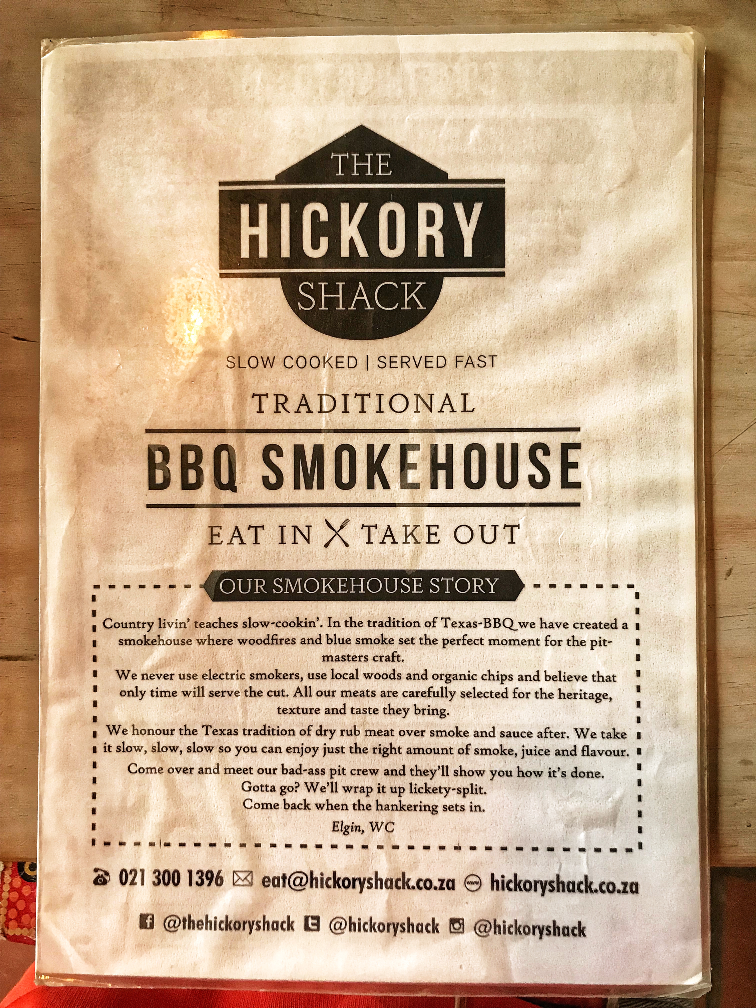 Damals in 2006 war ich im Aquila Game Park und war begeistert. Ich wollte wieder hin, aber in Südafrika lebende Freunde empfahlen uns dort nicht mehr hinzugehen. Also suchten wir uns was Neues aus, eine Safari, die wir nicht kannten. Botlierskop Privat Game Reserve sollte es also werden. Wir buchten uns ein paar Tage zuvor eine Hütte dort und die stellte sich als perfekt dar! Bevor wir aber ankamen mussten wir unterwegs noch zu Mittag essen, die Fahrt war laut Navigation mit 4 Stunden und 27 Minuten angesetzt. Wir hielten also nach einer Stunde Fahrt ab Kapstadt auf der Autobahn 2 im Ort Elgin an und gönnten uns richtig gutes und deftiges Essen im „The Hickory Shack“, einem witzigerweise traditionell Texanischem Steakhouse. Mit vollem Magen und dem delikaten Geschmack im Mund gings weiter zum Park. Für alle, die es gerne deftig mögen, ist dieser Ort wirklich super.