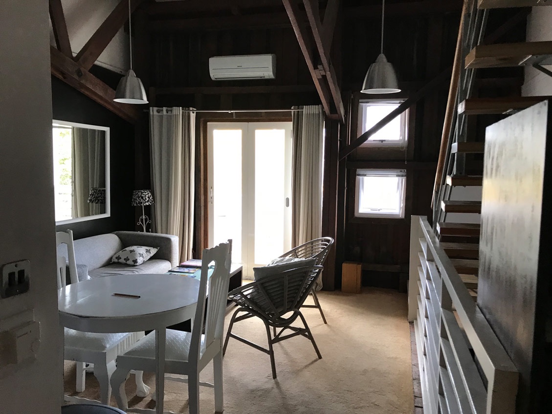 Oben ist die Terrasse und der Hauptbereich der Lodge und unten , das ist unser Zimmer 🙂