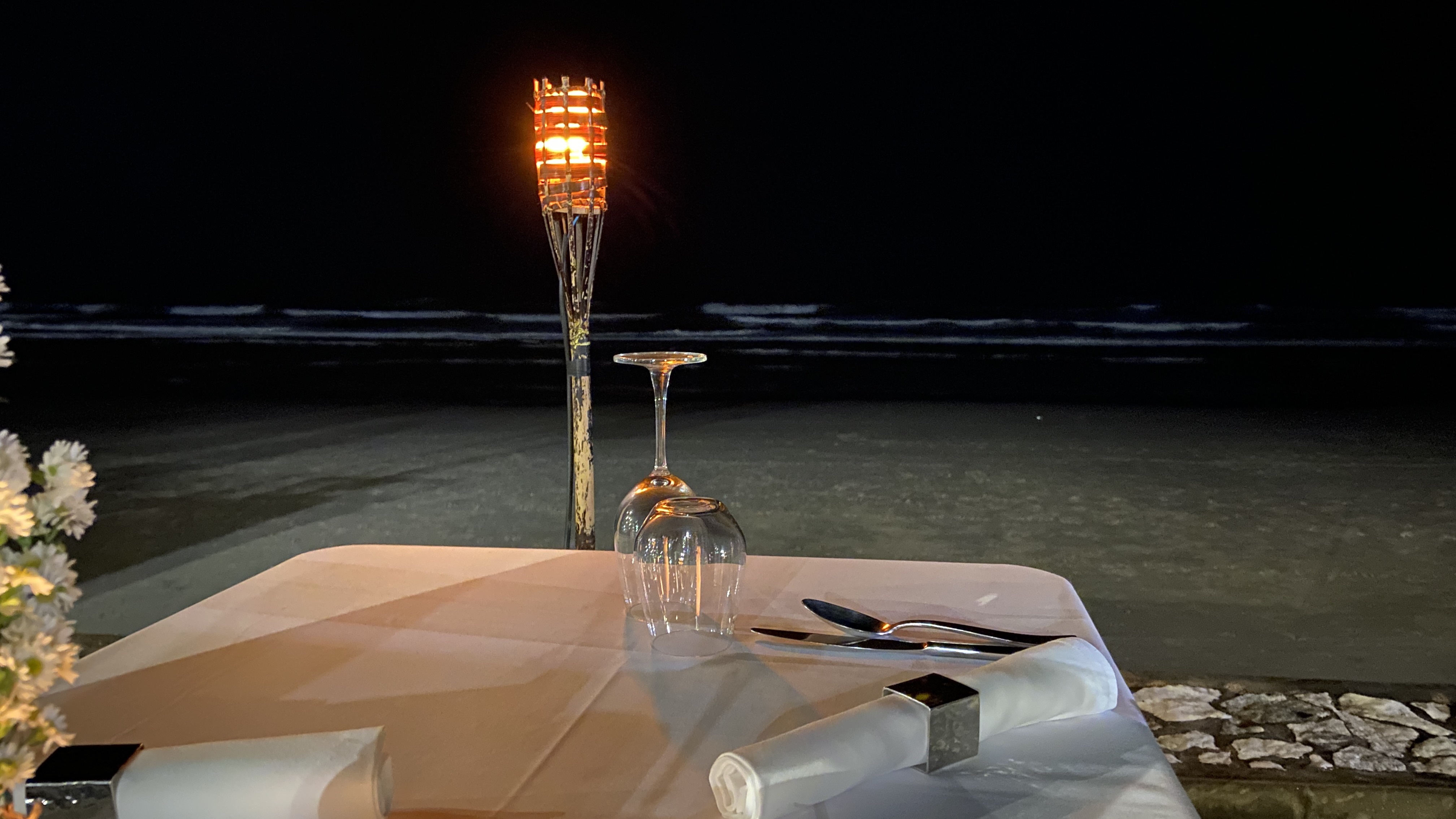 In der Villa angekommen, bestellten wir uns erst was zum Mittagessen und dann hiess es relaxen bis zum Abend. Wir wollten noch ein letztes Mal am Wasser essen. Und weil jeder in dem Hotel seine eigene Villa hat, ist es recht einfach „alleine“ zu sein, auch wenn man sich im Restaurant des Hotels befindet. Viele entscheiden sich im eigenen Bereich zu bleiben, der einem wirklich alles bietet. Also saßen wir uns in eine der Sitzgelegenheiten in den Einbuchtungen und noch dazu alleine! Nix war los, außer die Band von der Woche zuvor. Die spielten dann letztlich nur für uns, das war wundervoll.