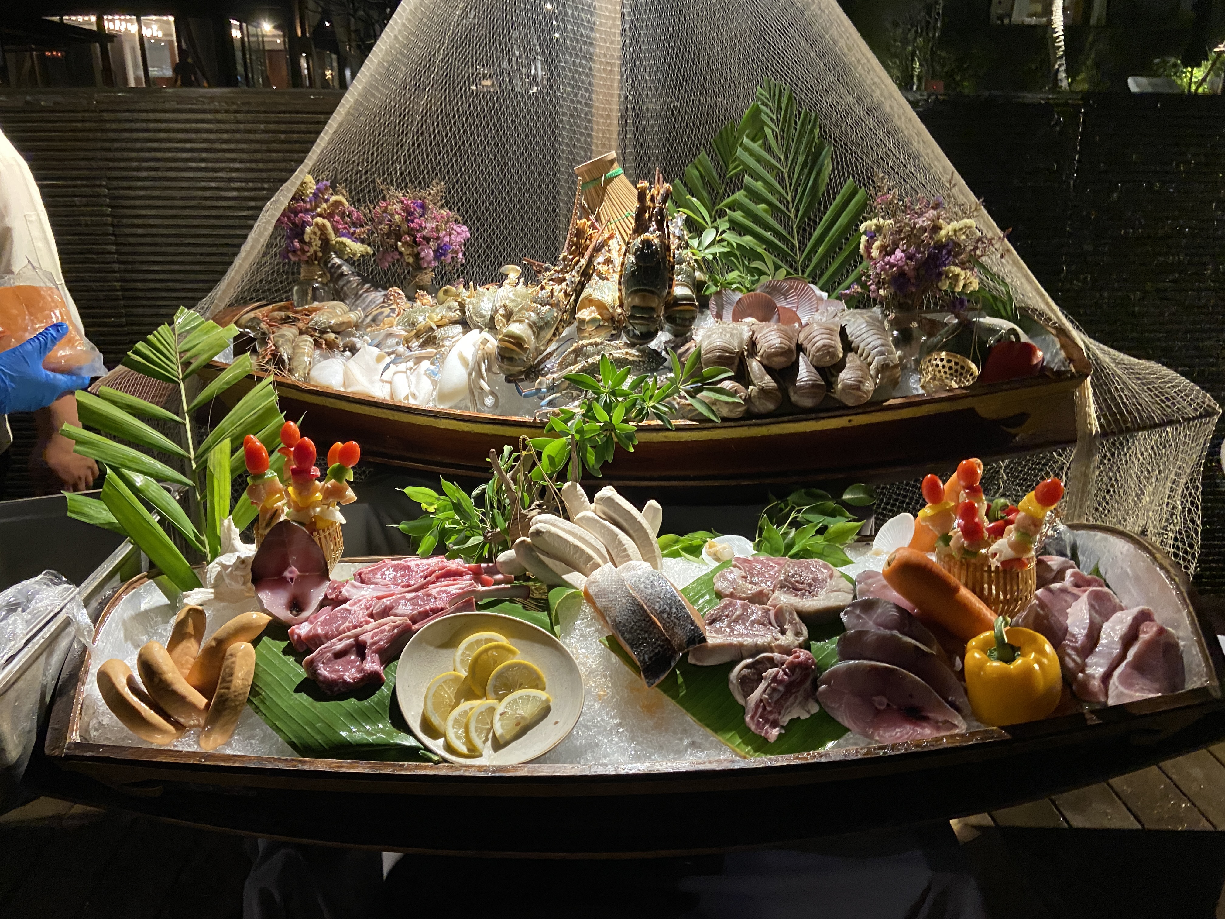 Das Hotel ist der absolute Hammer, ich habe mich unendlich verliebt in die Villa ❤️ Zweimal die Woche gibt’s ein BBQ Buffet im Hotel und weil wir grade erst angekommen waren an dem Morgen, haben wir gleich zugesagt. Von Fisch bis Fleisch oder auch für Vegetarier, ist hier alles zu finden! Kostenpunkt fuer Erwachsene sind es 100 Euro und für Kinder die Hälfte. Eine Band spielt den gesamten Abend auch noch nebenher, was ganz schön ist. Manchmal auch lustig, die Thais lieben ja Karaoke und so findet man überall Musiker im Land. In unserem Fall war das eine tolle Sängerin, nur leider war der Gitarrenspieler nicht der beste :-))