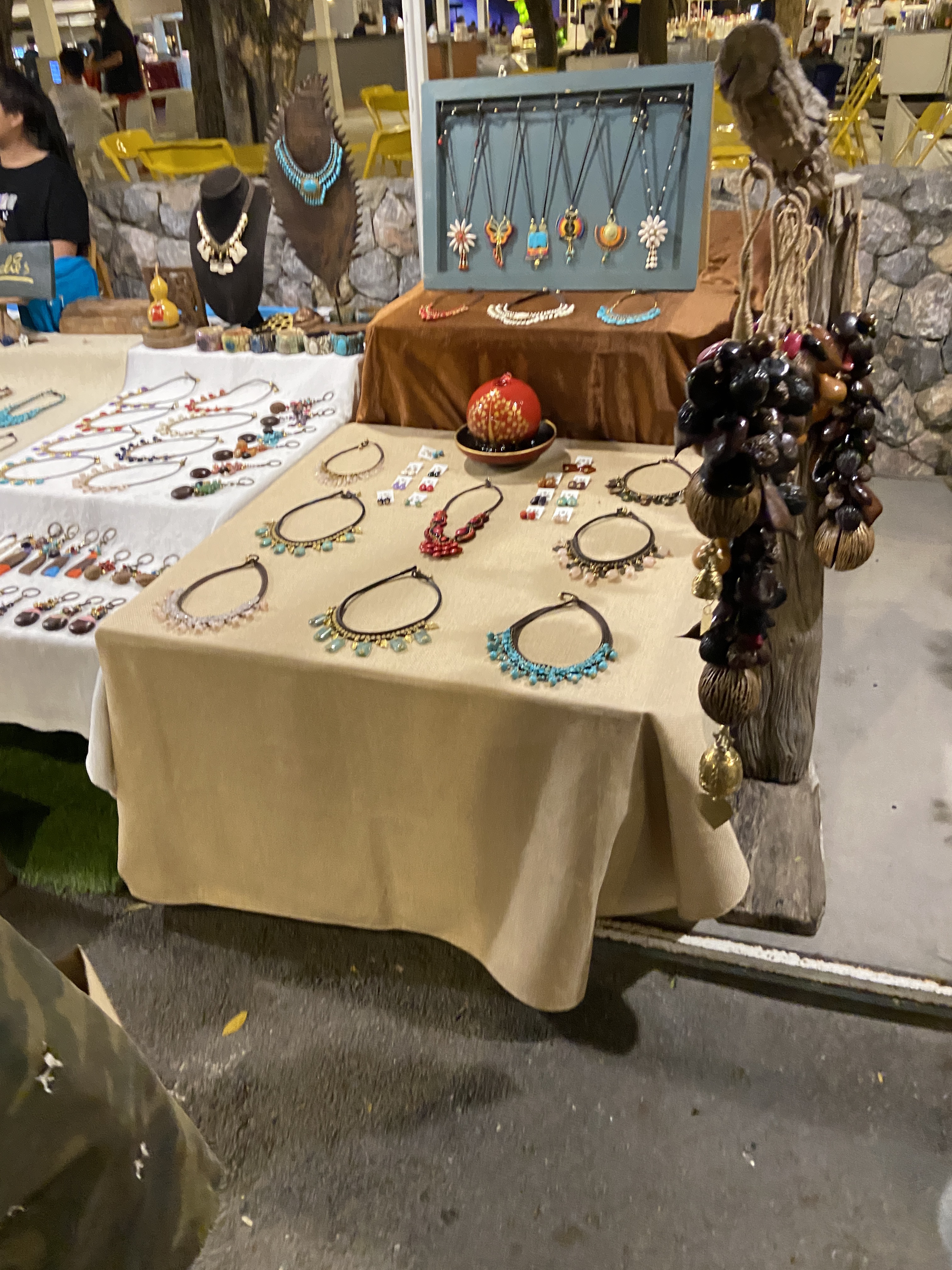 Das Abendessen sollte dann auch auswärts sein, aber nicht in einer Mall :-)) Nachdem der Floating Market leider nicht die Reviews vorweisen kann, die ich mir erhofft hätte, haben wir uns für einen anderen Markt entschieden. Den Citada Market, 15 min zu Fuß von unserer Villa entfernt. Auf dem Weg dorthin hat uns direkt ein Tuktuk eingesammelt und dann waren wir auch schon nach 1 min dort 🙂 100 / 150 Baht kostet jede Fahrt hier (die Entfernung macht den Preis aus), das entspricht etwa 3,00 Euro / 4,50 Euro. Der Eingang war schon recht imposant, die Buchstaben des Marktes standen riesig auf dem Wasser und rechts davon war ein Amphitheater in dem es auch grade eine Vorführung zu bestaunen gab. Das war ein sehr schönes Willkommen heißen 🙂 Der Markt war total sauber, keiner der einem auf die Nerven ging, die Waren waren schön und teilweise auch richtig kreativ. Aber das ist auch kein Wunder, denn es ist ein Kunst-Nachtmarkt und so findet sich in jeder Ecke auch etwas künstlerisches. Ausserdem noch jede Menge Bekleidung, Accessoires, Spielsachen und natürlich Essen. Die Entscheidung zu fällen ist mir gar nicht einfach gefallen und am liebsten hätte ich bei jedem Stand etwas anderes probiert.